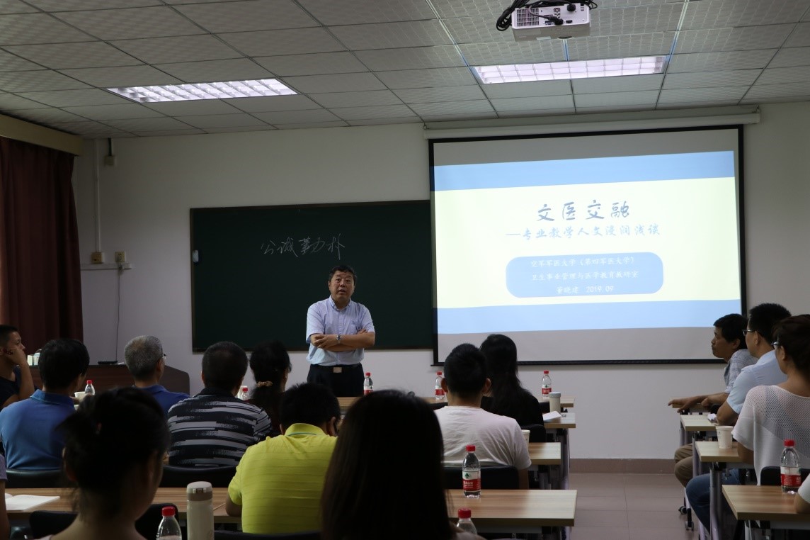为贯彻落实全国教育大会精神,坚持质量本色,培养一流人才,推动课堂思政建设,落实立德树人根本任务。9月7日下午,我院与教师发展中心邀请空军军医大学原军事教育与教学评价教研室主任董晓建教授为学院全体教师做《文医交融—专业教学人文浸润浅谈》专题培训。