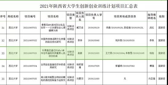根据陕西省教育厅《关于公布2021年大学生创新创业训练计划项目名单的通知》(陕教高办﹝2021﹞21号),我院共4个项目获批立项。其中,国家级项目2项,省级项目2项。