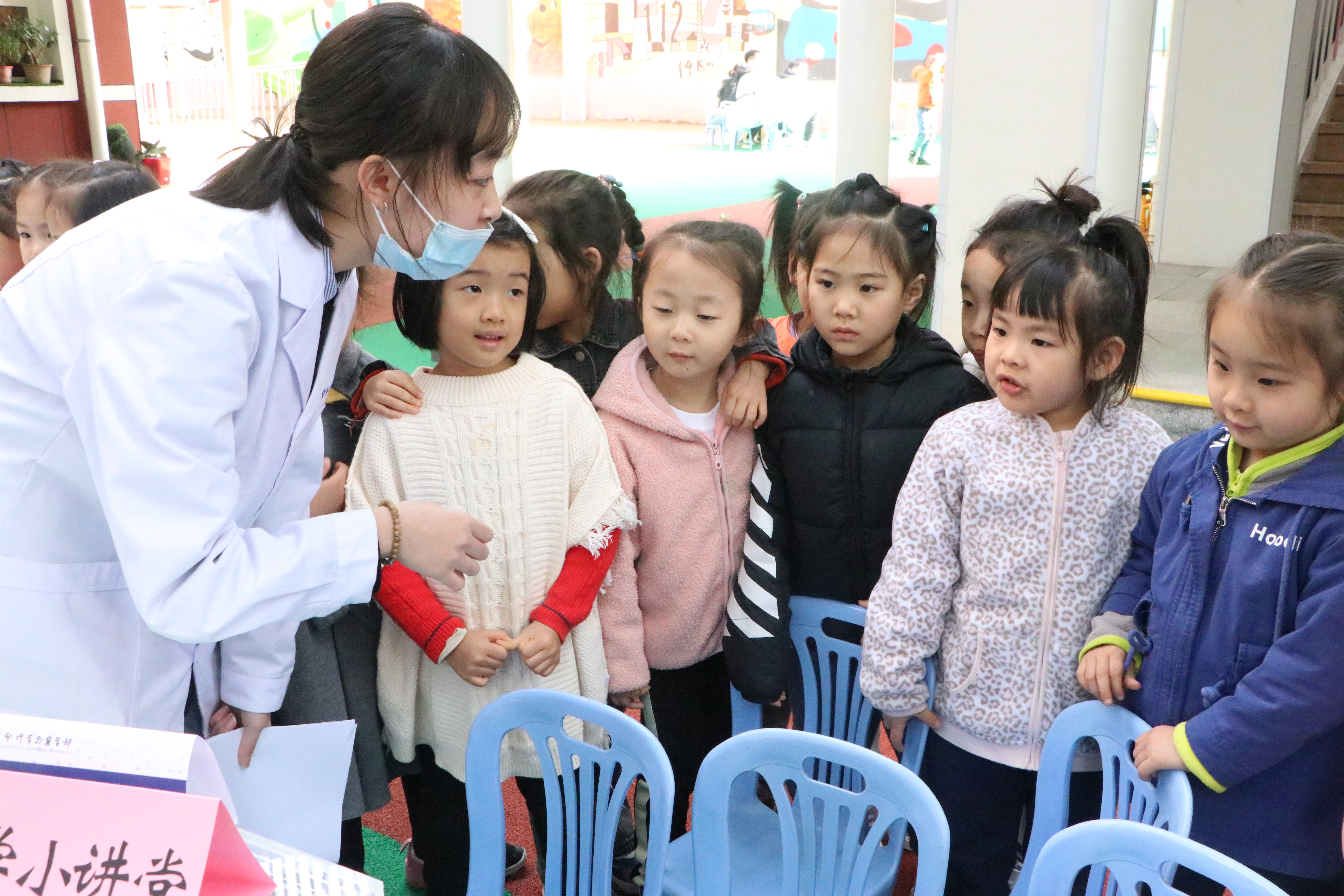 在简单的介绍后,幼儿园大班的小朋友分为八批分别前往我们的八个摊位,由我们的志愿者进行讲解。