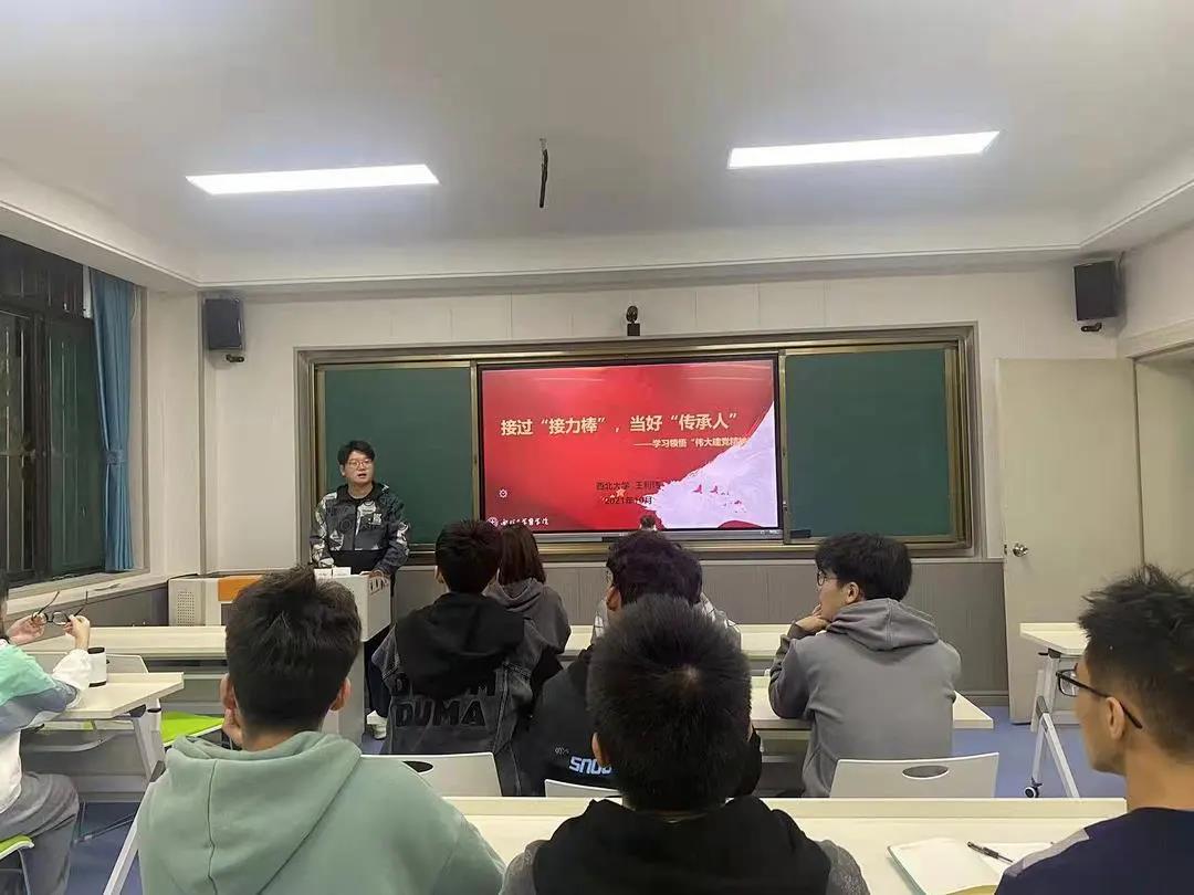 为深入学习习近平新时代中国特色社会主义思想,贯彻习近平总书记“七一”重要讲话和习近平总书记来陕考察重要讲话精神,增强团员青年对中国共产党百年奋斗历程的认识,引导西大医学学子承担起新时代的责任与担当,英国上市公司365团支部(直属)于10月、11月分别开展三期“医青之声”系列主题团课。王利玮以“接过‘接力棒’,当好传承人”为主题,与团员们一起回顾习近平总书记在“不忘初心、牢记使命”主题教育总结大会和庆祝中国共产党成立100周年大会上的讲话。