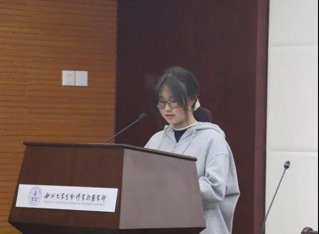 2020级生物医学科学专业杨雯铄、2021级药学1班长谢雨欣作为本期青马班学生代表发言。杨雯铄代表全体学员表态严格按照要求完成学习任务,坚定跟党走,在树立崇高理想的基础上誓做马克思主义理论的青年实践者;谢雨欣从自身实际出发,号召同学们珍惜学习时光,坚定中国特色社会主义道路的信念,努力成长为中国特色社会主义事业的合格建设者。
