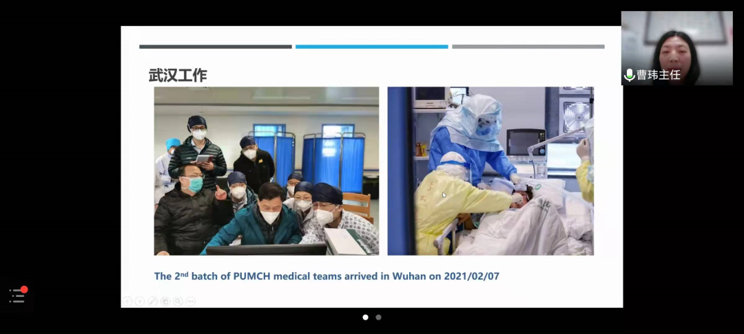 2020年2月7日至4月15日,作为北京协和医院援鄂医疗队专家代表,曹玮医生随国家援鄂抗疫医疗队奔赴武汉一线,参与了首批重症监护病房的建立、危重症患者救治等工作,并与武汉当地医院开展临床合作研究。她强调,广大师生一是要正确认识病毒,积极应对病毒;二是要做好自我防护,坚持科学防控;三是全体同学尤其是医学生一定要扎实学好专业知识,救死扶伤是医生的天职,也就是医生的使命与担当,期待西大学子能为未来的疫情阻击战做出“西大贡献”。
