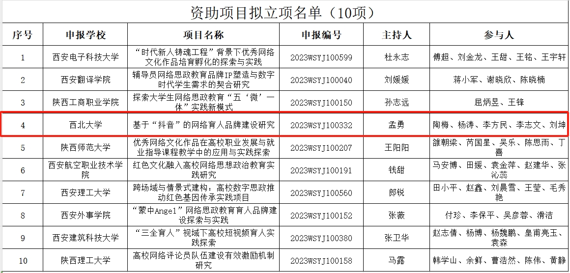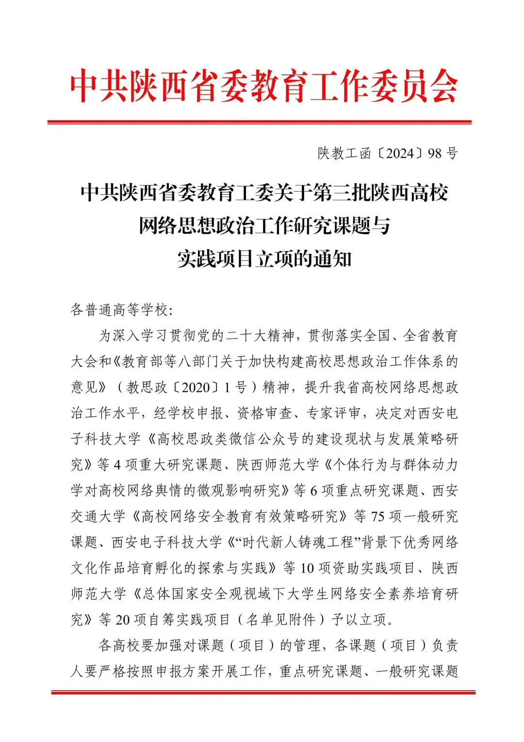 我院孟勇教授实践项目获批第三批陕西高校网络思想政治工作资助实践项目立项