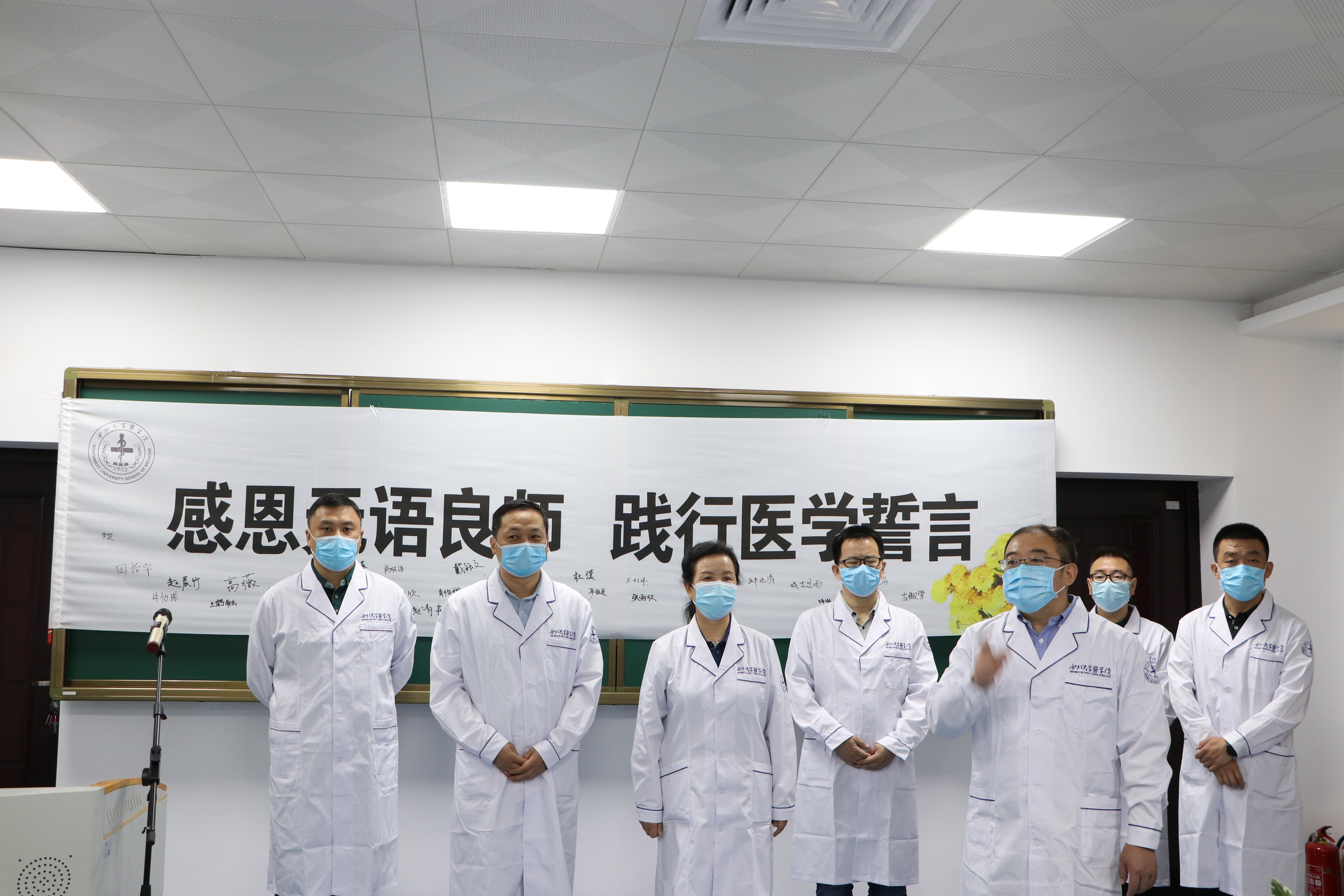 全体医学生宣誓,诵读解剖学誓词。学生代表王异琳发言,“今天的致敬仪式让全体医学生深深的感受到大体老师们的大爱无私,是我们医学生涯的开端,也将成为永久的记忆,我们一定会发扬尊重生命、救死扶伤的仁爱和决心。”