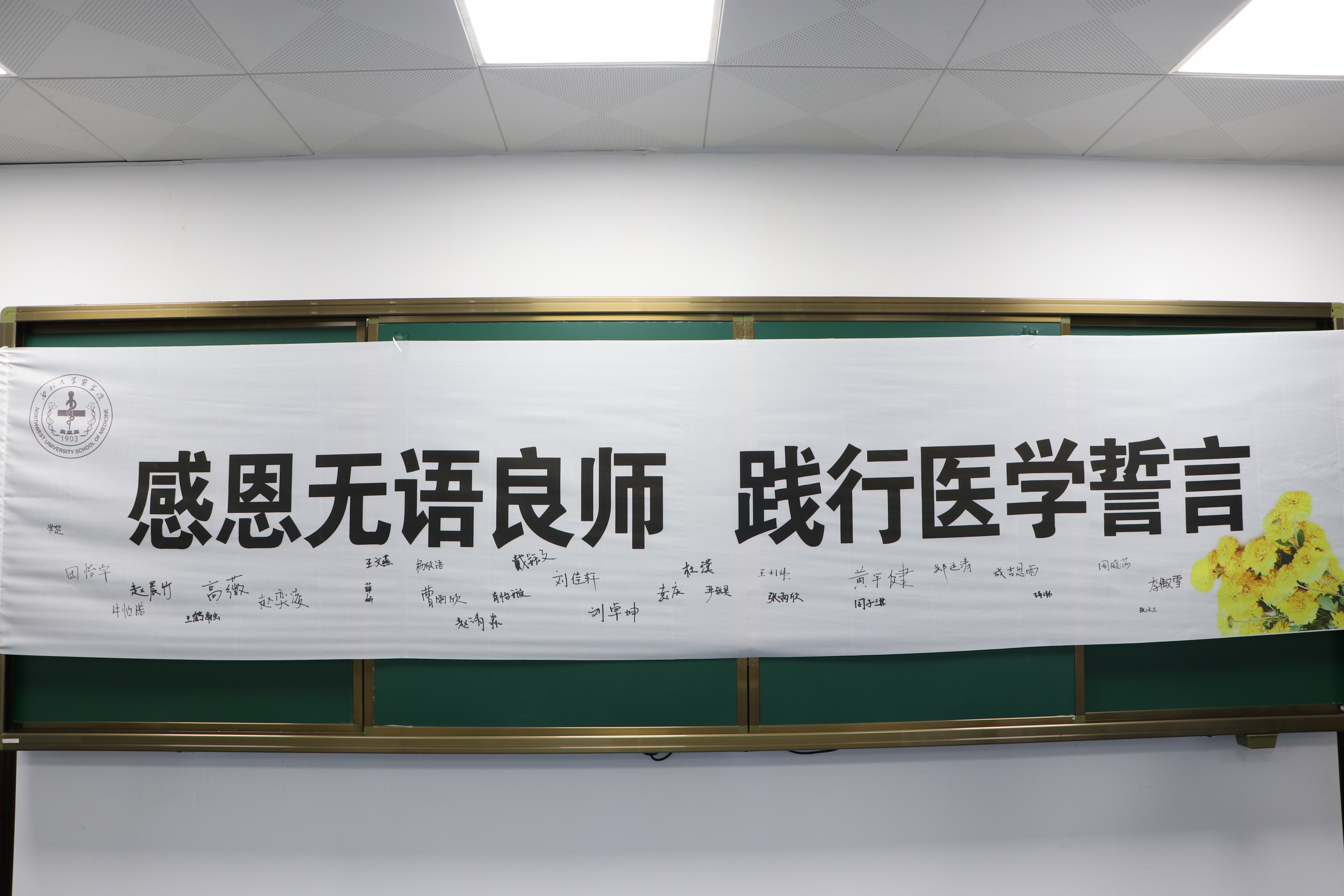 仪式上,参会人员默哀一分钟、献花致敬,医学生在致敬横幅上郑重签名,向大体老师致以深情的缅怀和崇高的敬意。