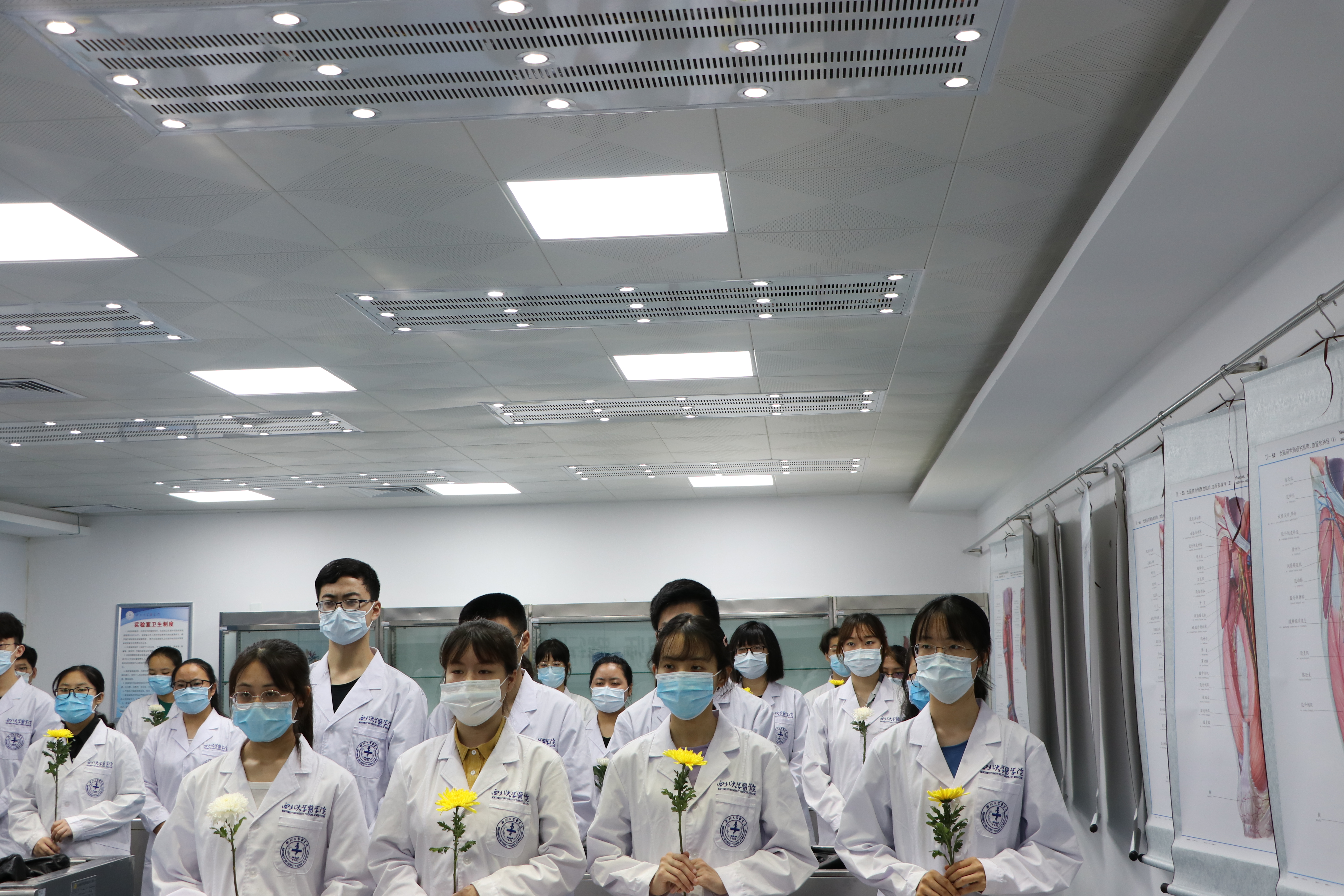 李金莲介绍,大体老师是学生们心中的“无言良师”,为同学们提供了学习和成长的机会。她希望,同学们能够感受无私奉献、救死扶伤的深刻内涵,以严谨的态度、严肃认真的作风,耐心细致地完成学习任务,把对生命的尊重传承下去。