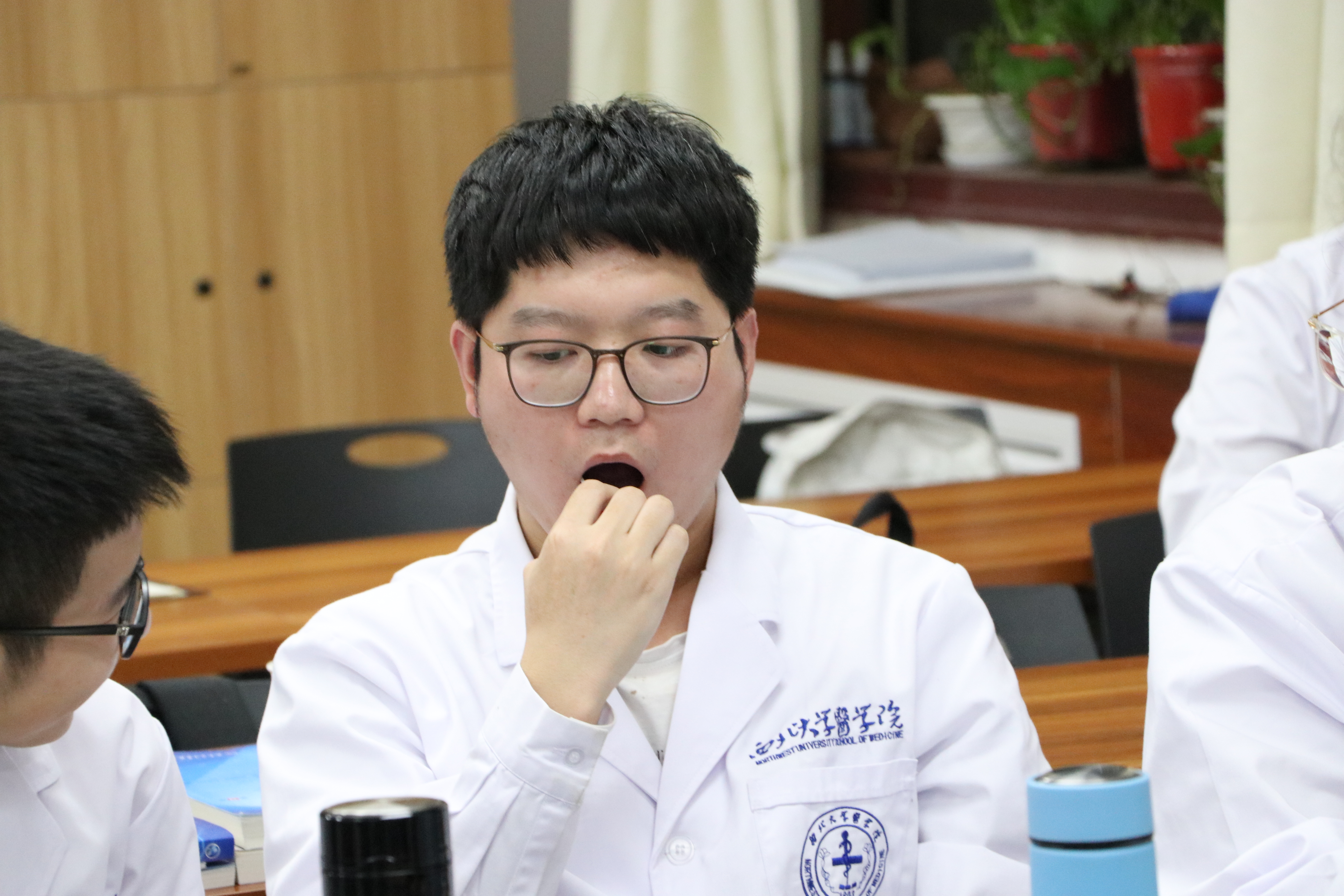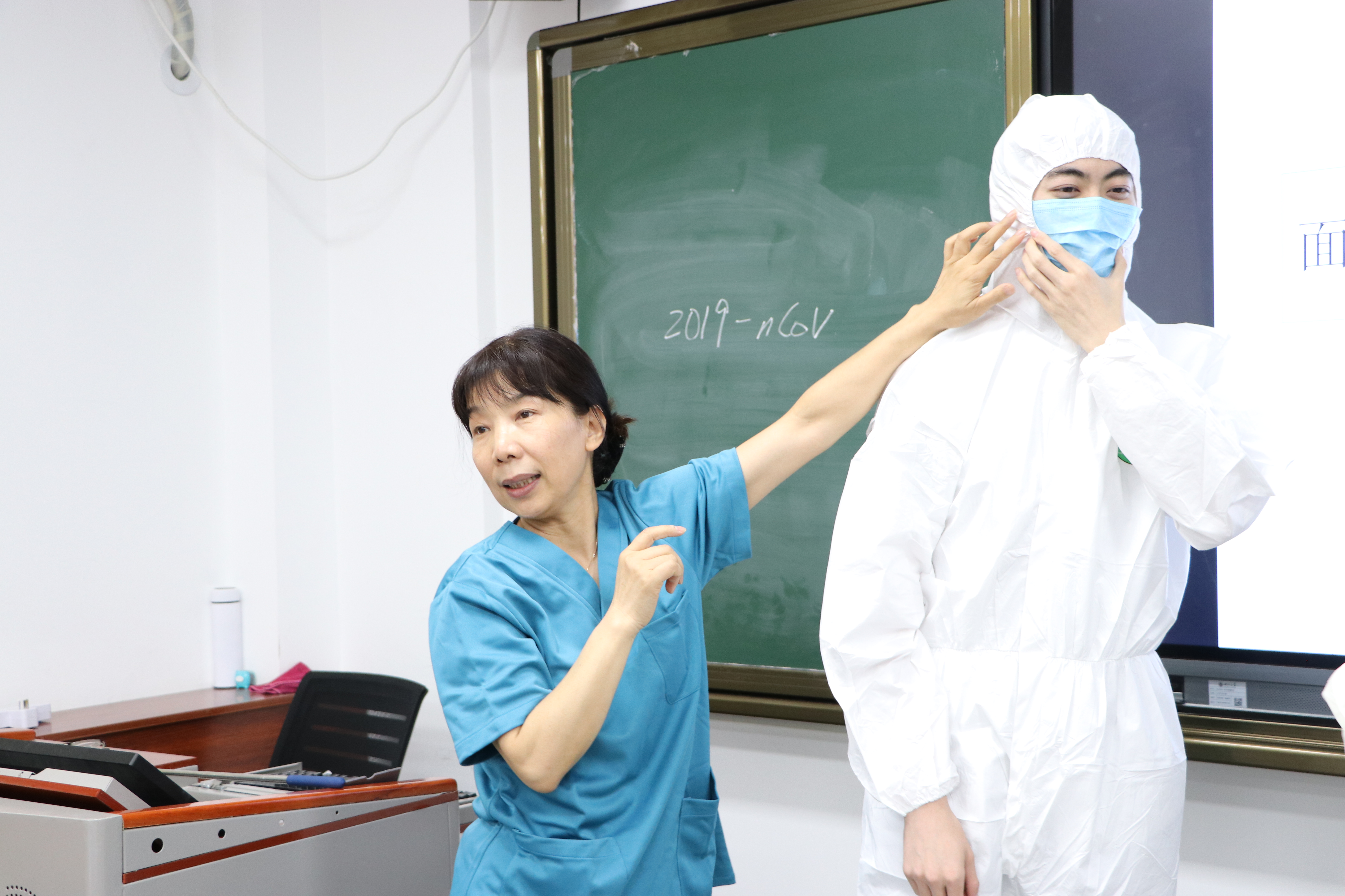 演示完毕后,2019级临床医学专业本科生在雷小航与惠文利副教授的指导下进行了防护服的穿戴体验,学习了个人口腔拭子采样方法,并顺利完成口腔标本采集。