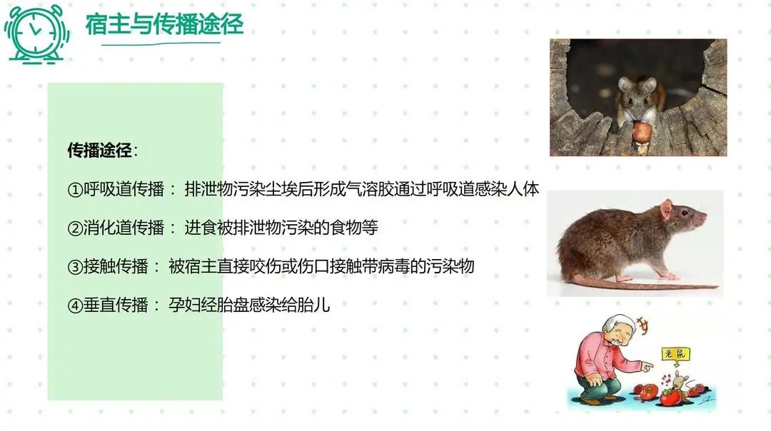 传播途径:传播途径多种多样,如接触传播、呼吸道传播、消化道传播、虫媒传播等多种方式。各种出血热最常见的传播媒介为蚊、白蛉、蜱、鼠类。