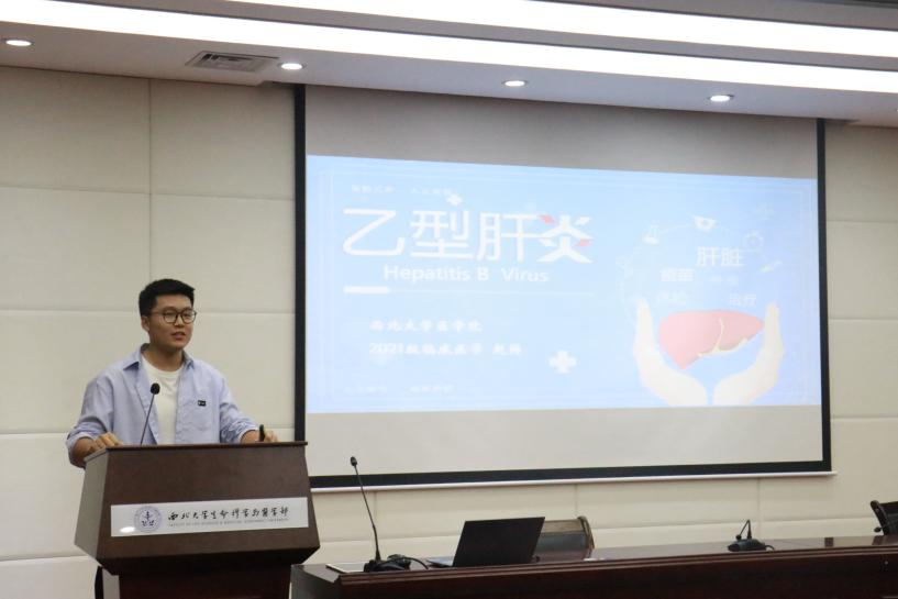 “有些病毒会以意想不到的方式进入我们的生活”,薛如瑞同学用身边的实例为同学们讲解出血热的传播与预防知识,并提醒大家注意个人卫生就是最好的防护措施。