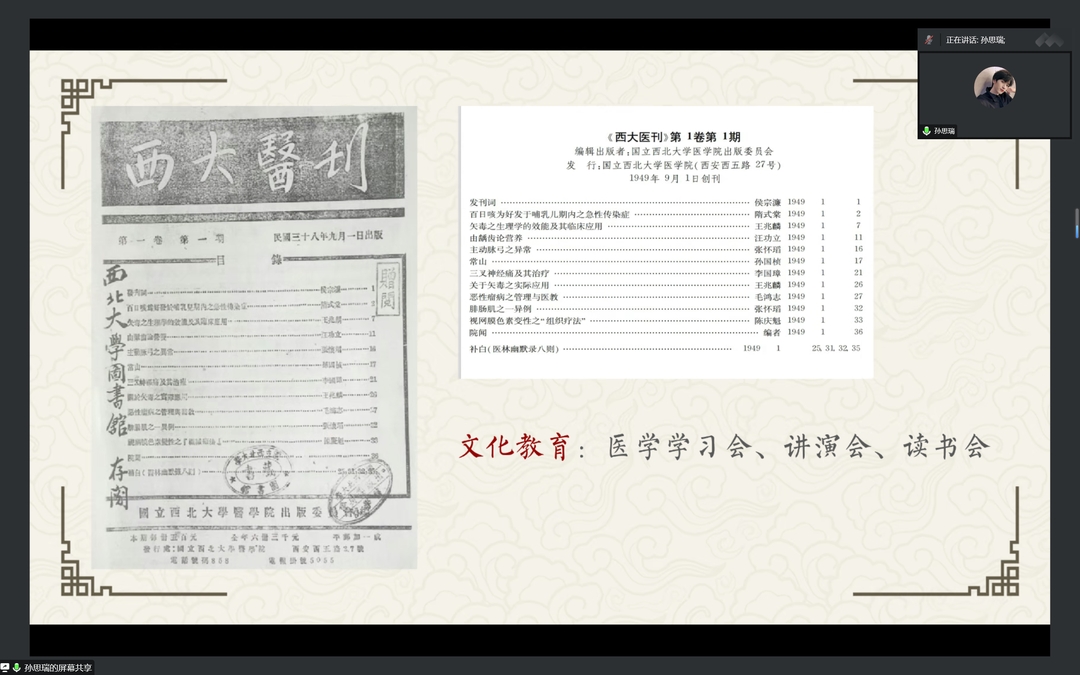 2组从英国上市公司365院刊着手,研读《国立西北英国上市公司365院刊》和《西大院刊》,展示了当时英国上市公司365基本情况以及医学生学习详情,主张我们要学习医学史,传承医学精神,不负历史厚望。