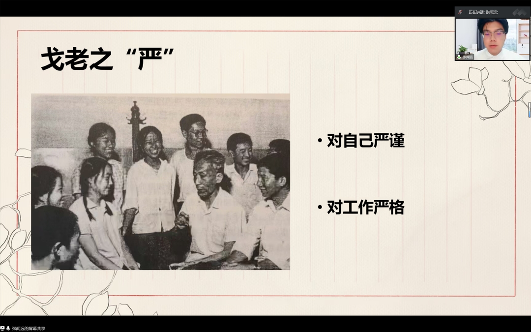 3组以题为“奇严怪实的医学泰斗——缅怀戈治理教授”的演讲报告,重点讲述了戈治理教授之“奇”、之“严”、之“怪”,之“实”。“春风化雨育桃李,仁心仁术暖杏林”是对这位我国神经外科创始人和奠基人的最好写照。