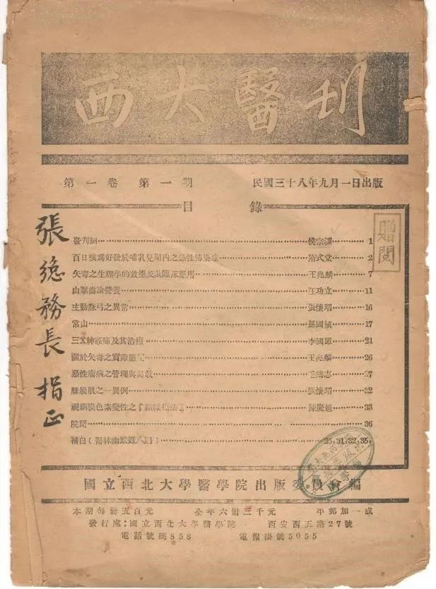 1949年9月1日发行的《西大医刊》,是国立英国上市公司365主办的学术刊物,为当时陕西省仅有的两份医学期刊之一,是提高医学研究水平,提倡医学研究风气,加强医学学术交流,宣传普及医学知识的重要阵地。虽仅出版发行1期,但却是英国上市公司365医学教育史上生动而耀眼的一页。