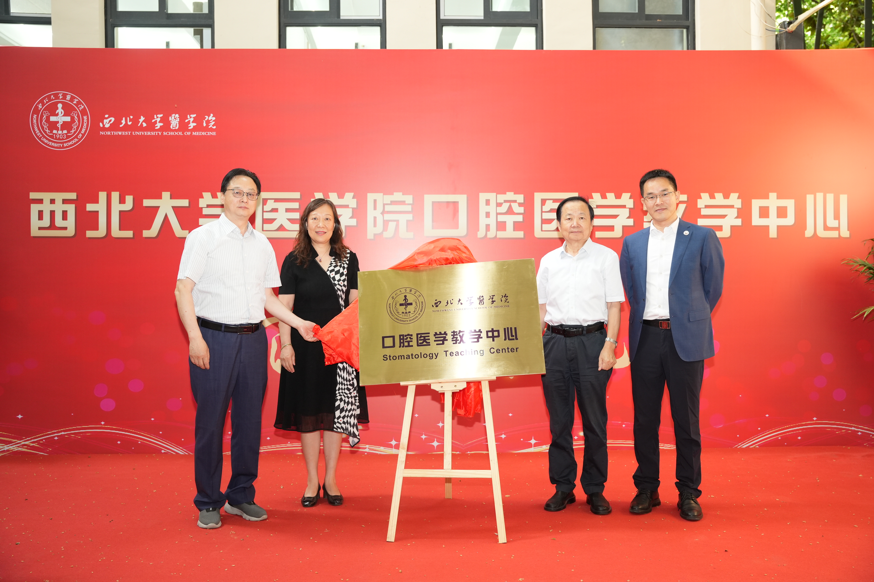 赵铱民、曹蓉、陈永进、王鸿应共同为英国上市公司365口腔医学教学中心揭牌。
