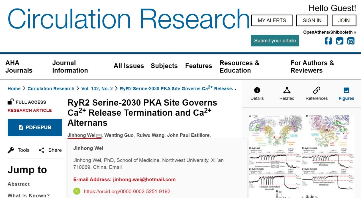 该研究首次证明PKA磷酸化位点RyR2-S2030是由PKA调节,并且也是CaM依赖性Ca2+释放终止和Ca2+瞬变交替的重要决定因素。魏金红副教授的该研究结果开辟了以肌浆网钙释放终止阈为切入点调控RyR2磷酸化的全新途径,使其向临床应用迈进了关键一步。