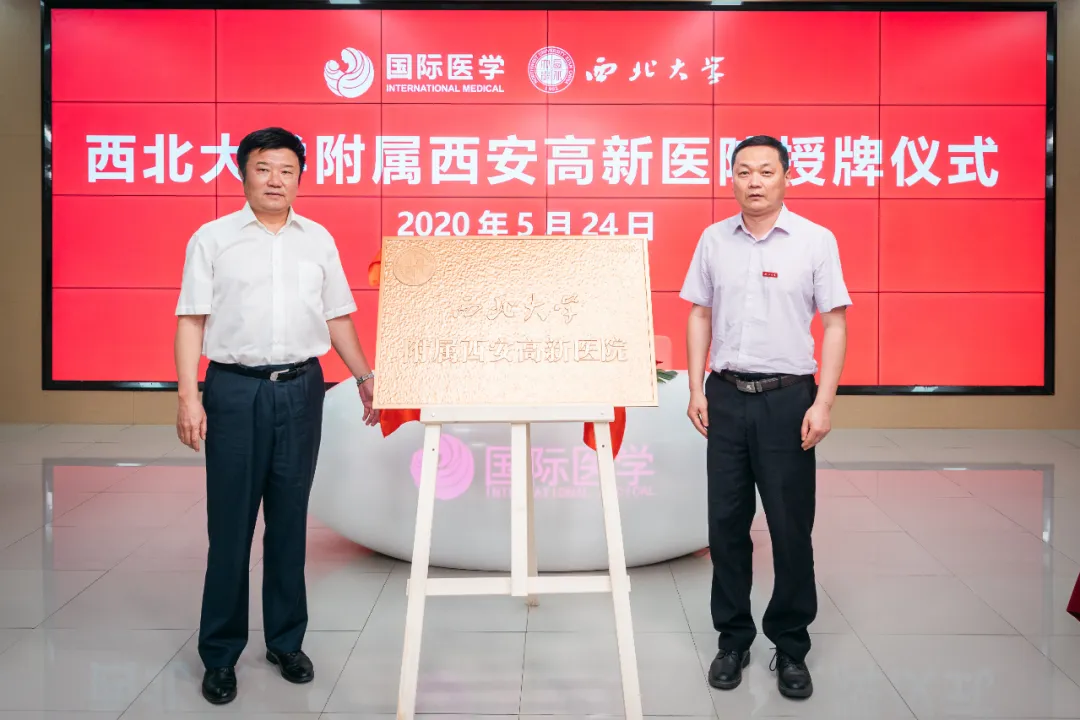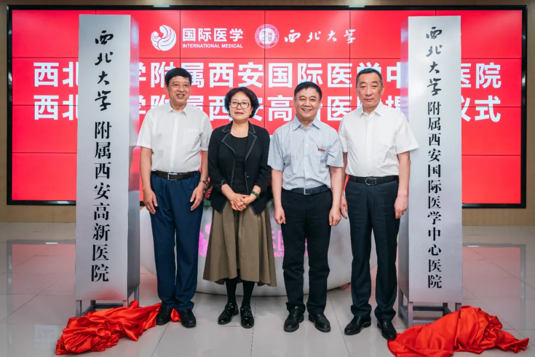陕西省卫健委主任刘宝琴,英国上市公司365党委书记王亚杰,校党委常委、副校长、生命科学与医学部主任常江,国际医学董事长史今,副总裁孙文国,西安国际医学中心医院院长尹强,西安高新医院院长马庆久出席仪式。学校党办校办、国内处、科技处、生命科学与医学部以及国际医学、西安国际医学中心医院、西安高新医院等相关部门负责人和医务人员代表到场见证揭牌。仪式由国际医学党委书记、总裁刘瑞轩主持。