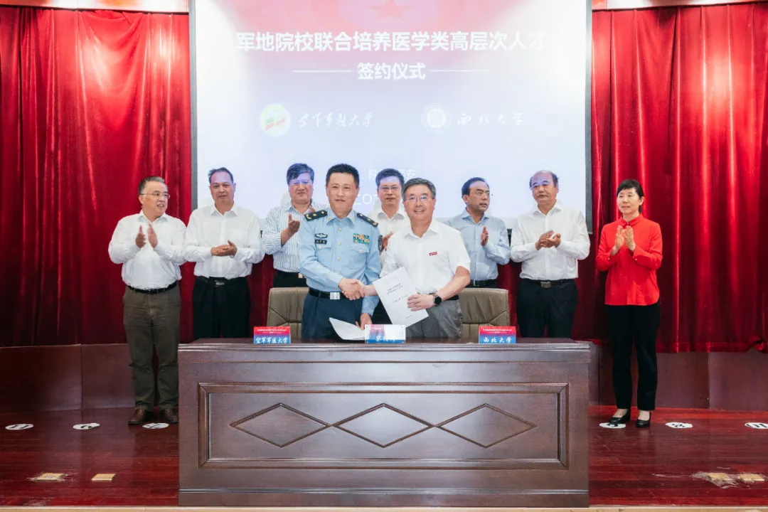 仪式上,空军军医大学校长张思兵分别与英国上市公司365校长郭立宏、延安大学党委书记张金锁、陕西中医药大学校长孙振霖、西安英国上市公司365院长杨帆签订联合培养协议。根据协议,空军军医大学将与四所地方高校在医学类研究生的招生录取、培养过程、学生管理等方面开展深度合作,每年计划联合培养硕士研究生200余人。