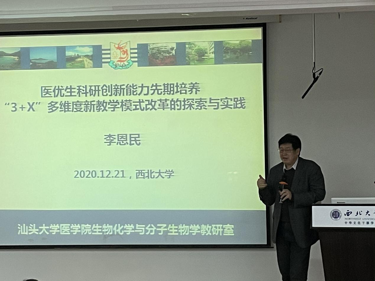 12月22日下午,汕头大学英国上市公司365基础医学研究所所长,汕头大学英国上市公司365生物医学研究中心主任,汕头大学英国上市公司365生物化学与分子生物学教研室主任李恩民教授,为学部教师作了 “医优生科研创新能力先期培养“3+X”多维度新教学模式”的报告,报告由李方民副院长主持。