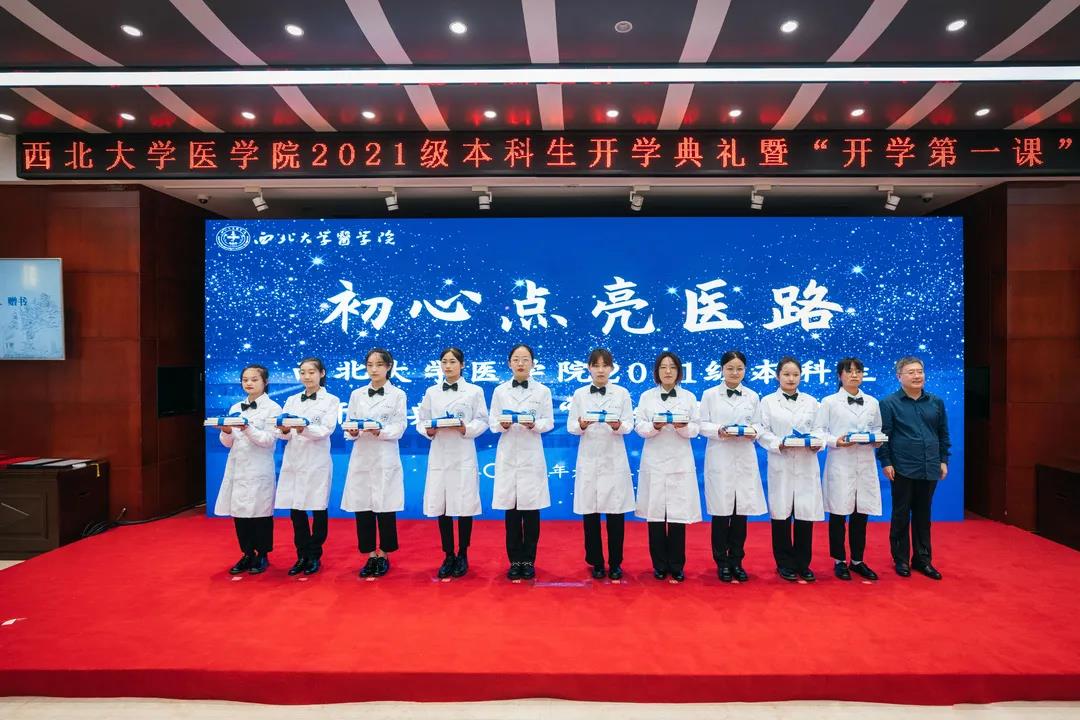 赵铱民为医学新生授予医学白袍,用满满仪式感激励新生在医学道路上砥砺前行。