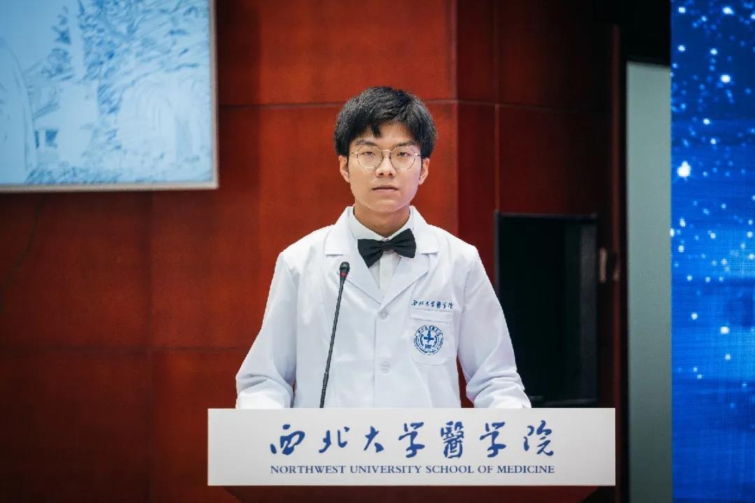 2021级口腔医学专业张闻远作为新生代表发言。他代表全体新生表态,今后将牢记“公诚勤朴”的校训,以“国家的需要就是我的理想”为信念,努力抓住时代机遇,以饱满的青春热情去赓续西大医学的精神底蕴。