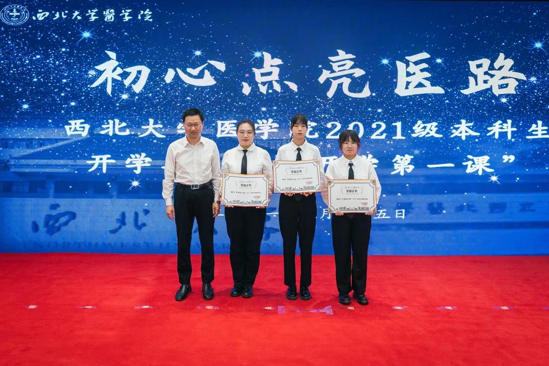 刘顺智、奚家米为2021级临床医学专业班主任陈协群教授、口腔医学专业班主任冯雪教授、生物医学科学班专业主任高明清教授颁发聘书。