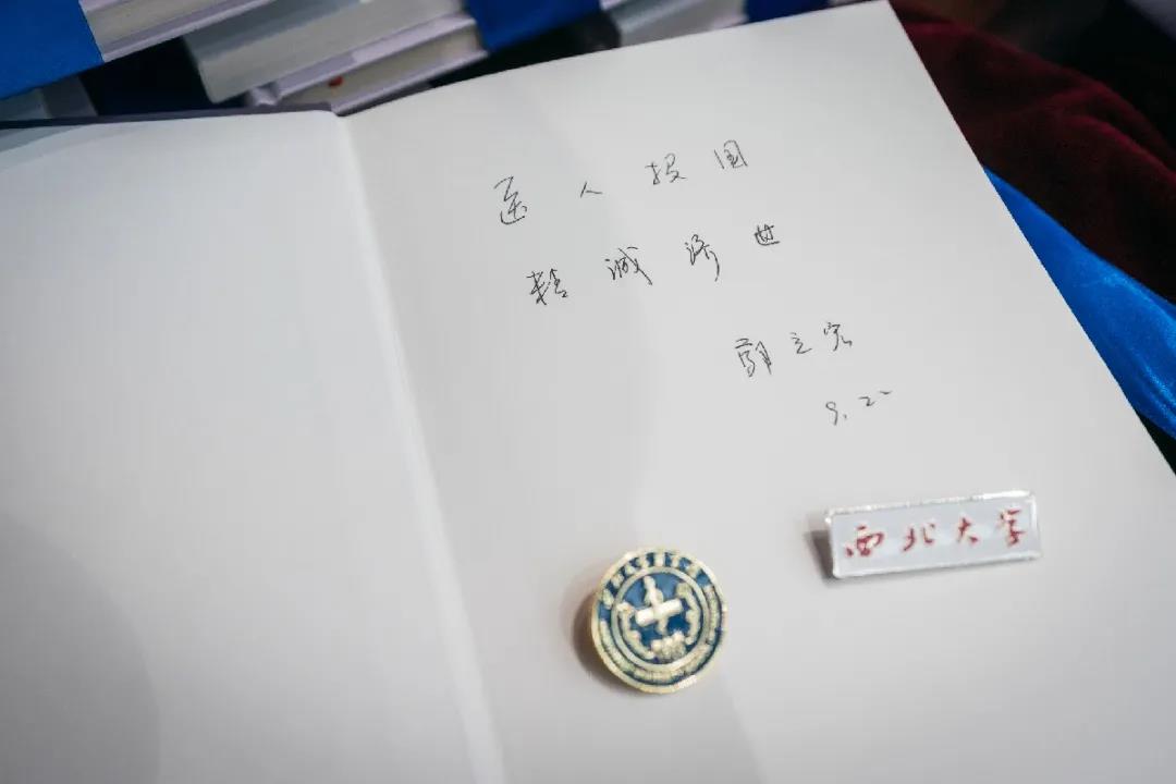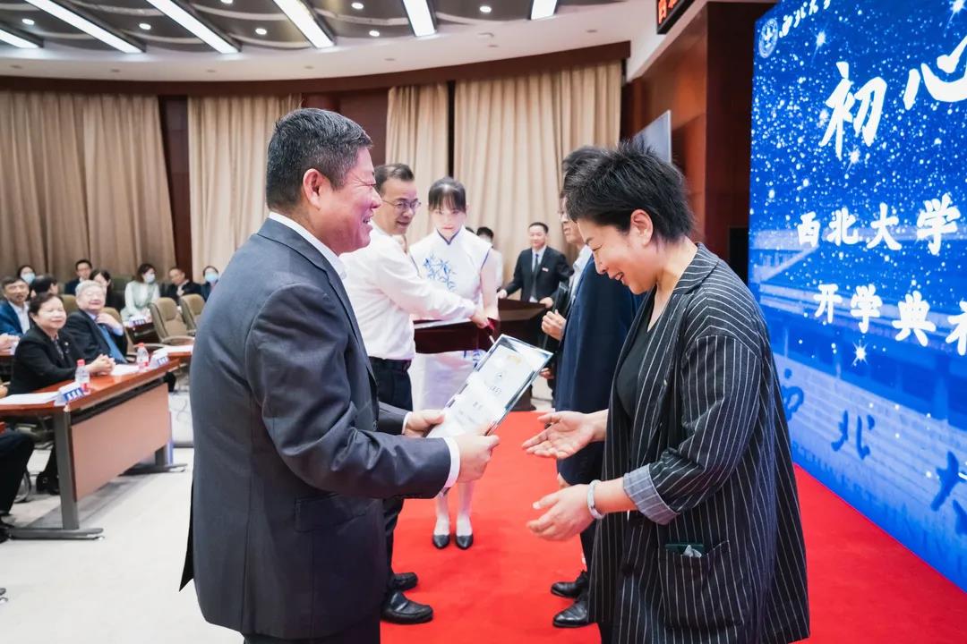郭立宏向新生颁发校徽、赠送书籍,为医学生开启漫漫医学求知和探索之路。