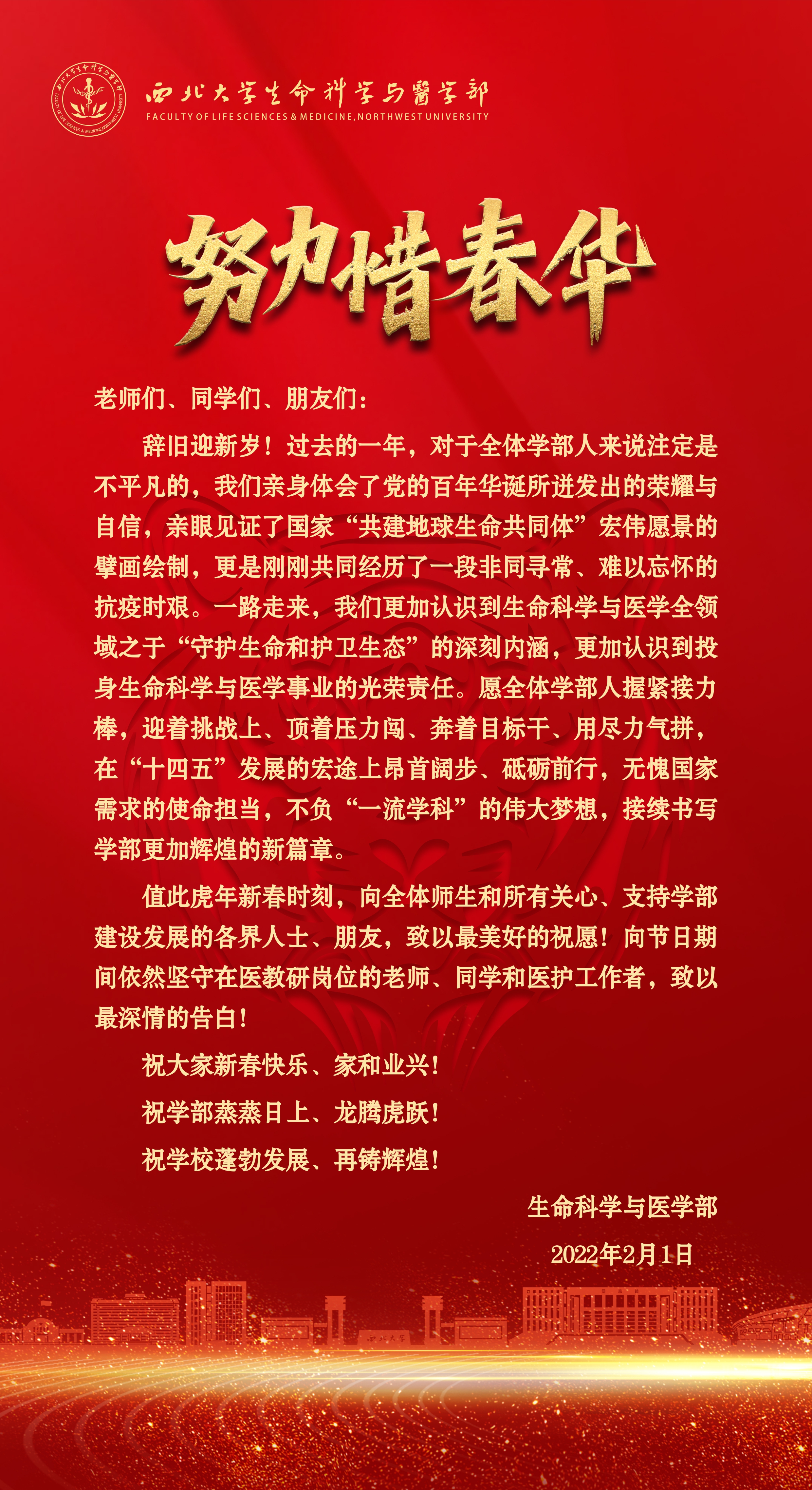 感恩过往,砥砺前行—NWU生命科学与医学部恭祝新春!