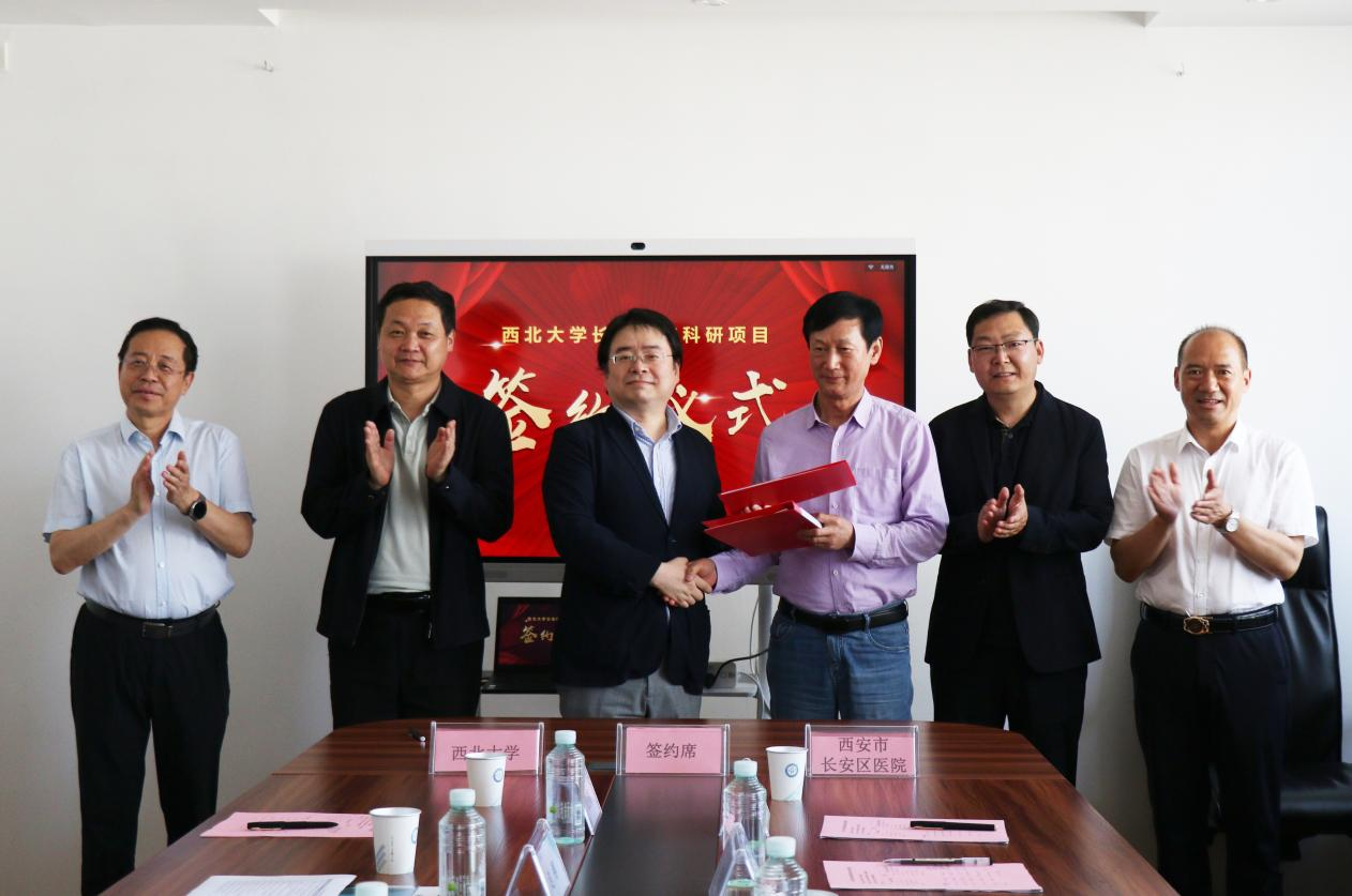 4月25日下午,我校英国上市公司365与长安区医院科研项目合作协议集中签约仪式在长安区医院双创中心举行。长安区医院院长胡明军,党委书记、副院长彭安海,我校党委常委、副校长、生命科学与医学部主任陈富林出席签约仪式。学校科技处、英国上市公司365等相关部门负责人及合作项目专家团队负责人参加签约仪式。