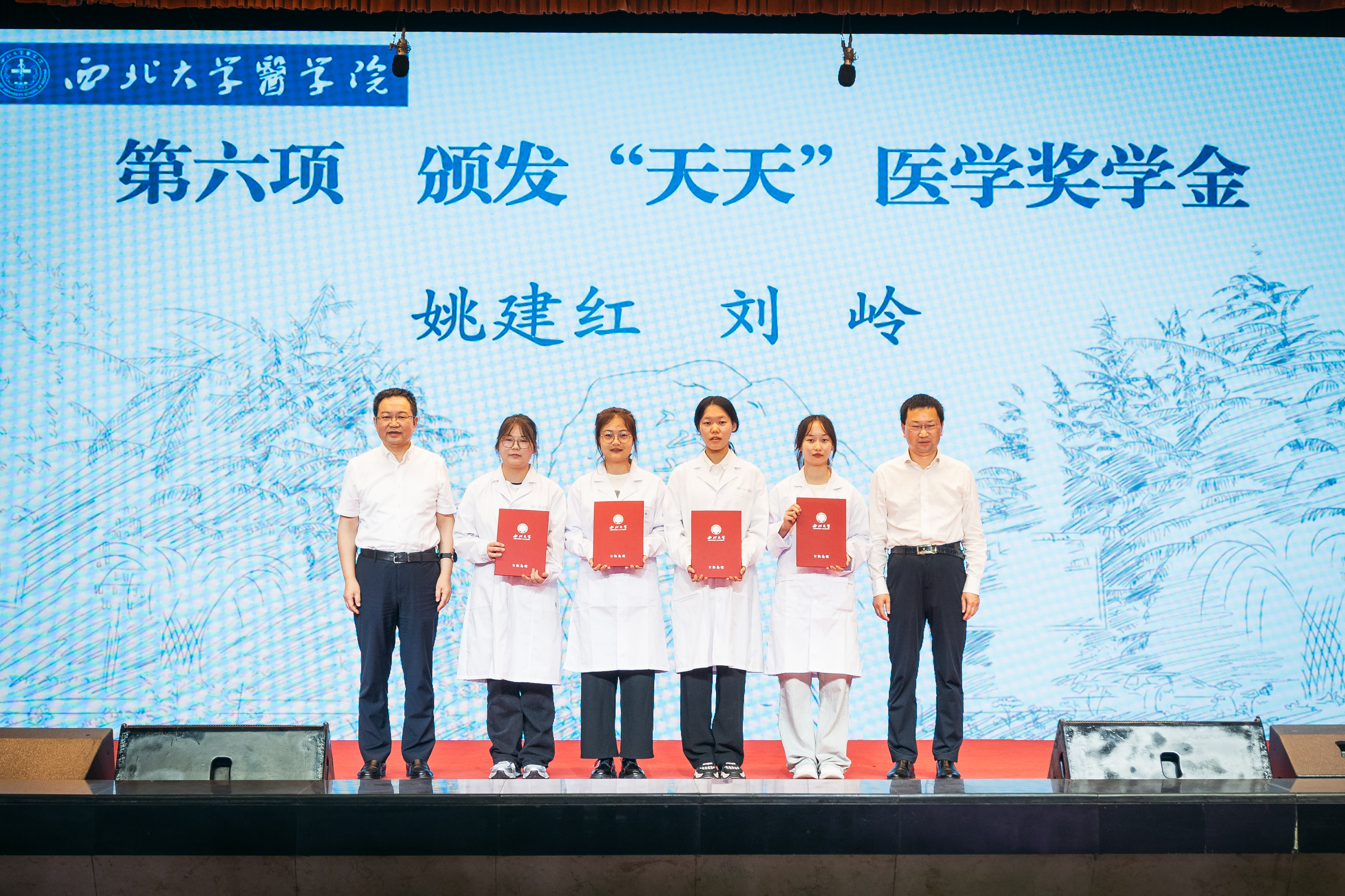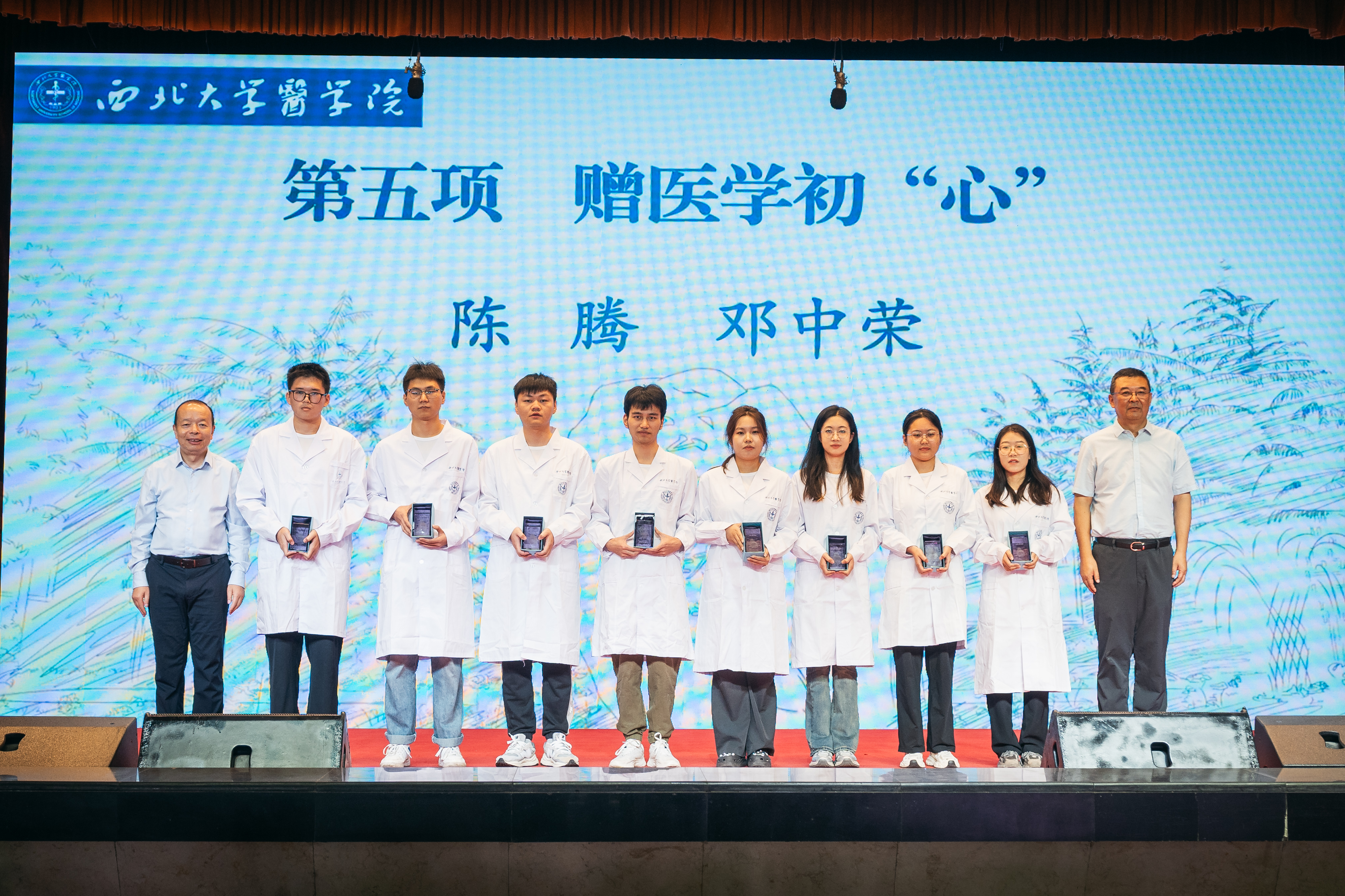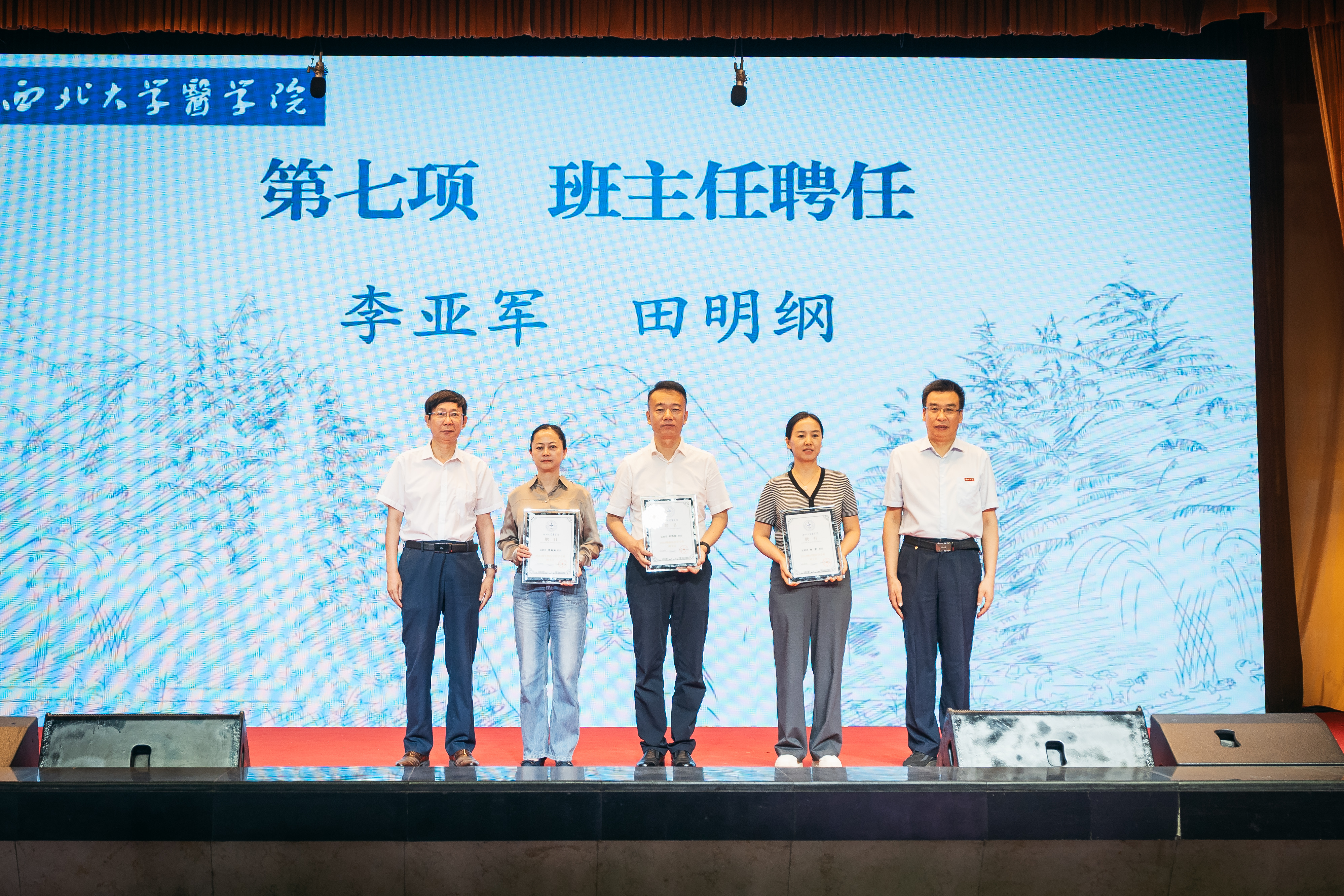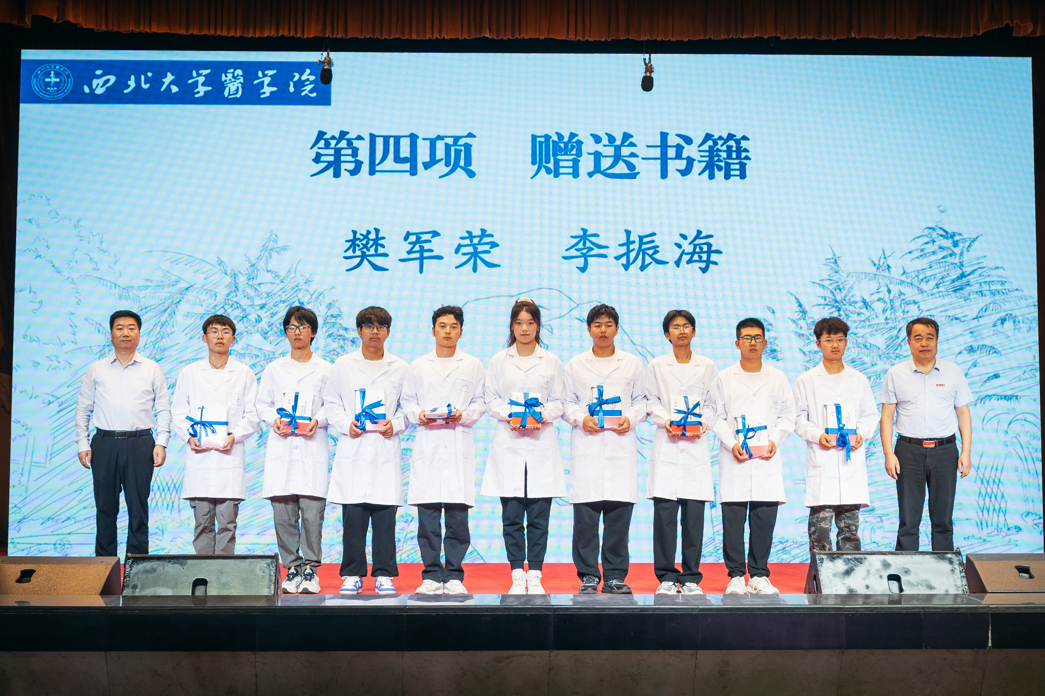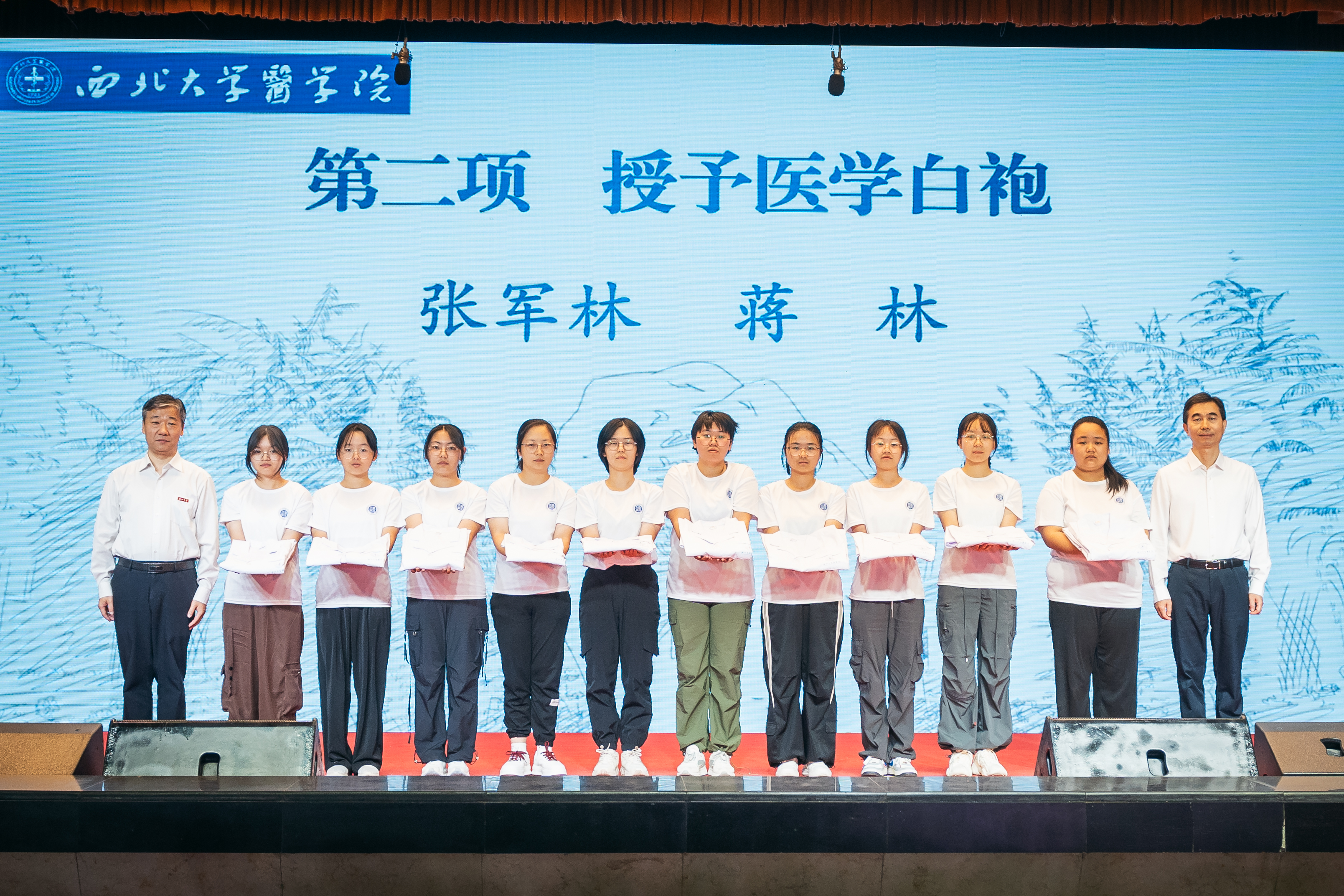 张军林、蒋林亲自将整洁神圣的医学白袍授予医学生代表,嘱托牢记医学使命。英国上市公司365附属人民医院主任医师崔志利带领医学生庄严宣誓,树立医者信仰。樊军荣、李振海为学生代表赠送书籍,传递开启智慧的钥匙。陈腾,邓中荣为学生代表赠送医学初“心”,砥砺医学生永远铭记学医初心。姚建红、刘岭为优秀学生颁发“天天”医学奖学金,鼓励同学们学习榜样,争当先进。李亚军、田明纲为2024级临床医学班主任石胜彬、口腔医学班主任张蓉、生物医学科学班主任师梅梅颁发聘书。