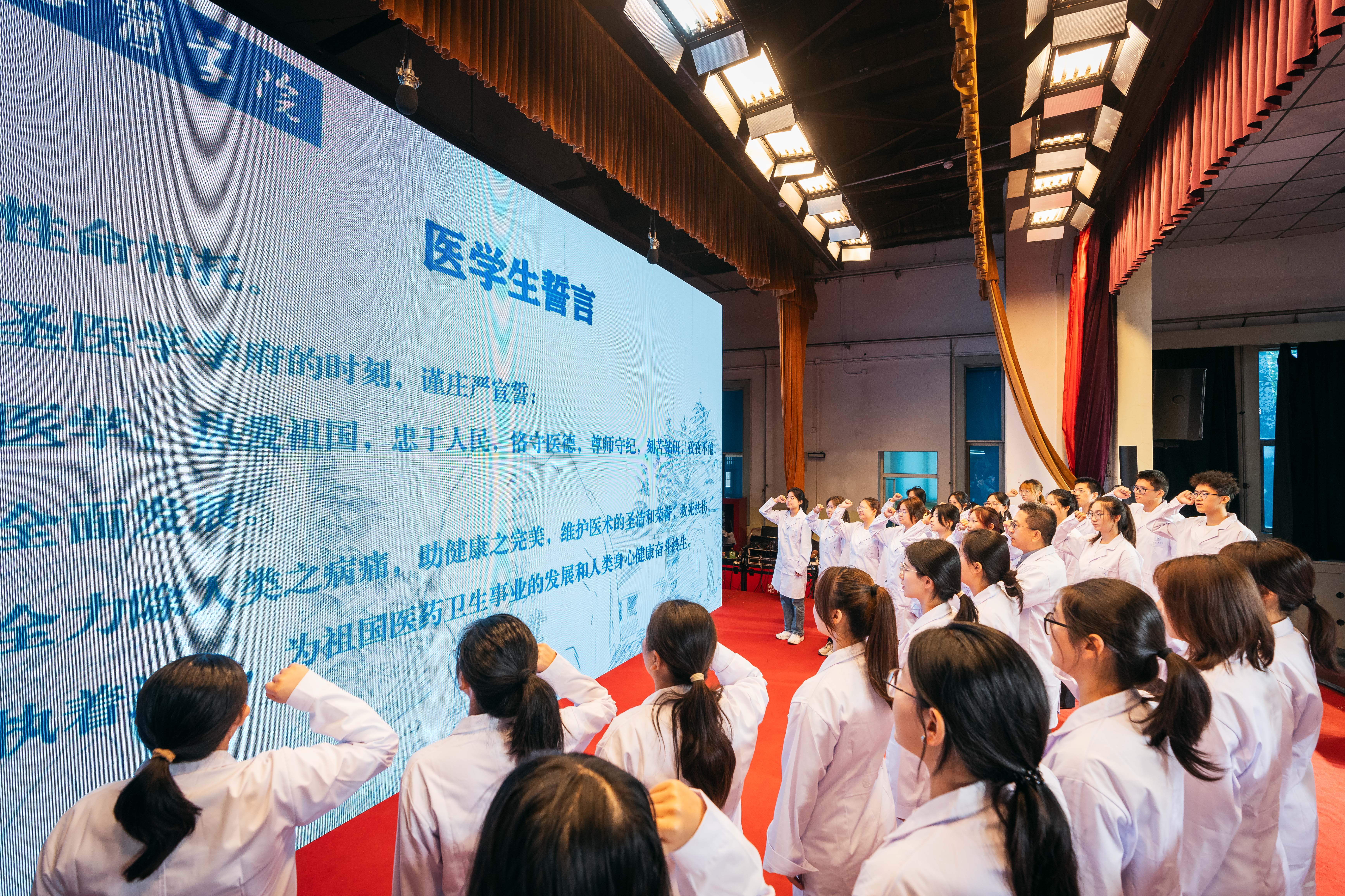仪式是重要的文化载体,是实践和行动的文化。医学生开学典礼暨“开学第一课”作为我校医学新生入校后的一堂大思政课,其满满的仪式感对于塑造医学精神,传承医学文化,增强职业荣耀有着重要的作用。(图/马骞)