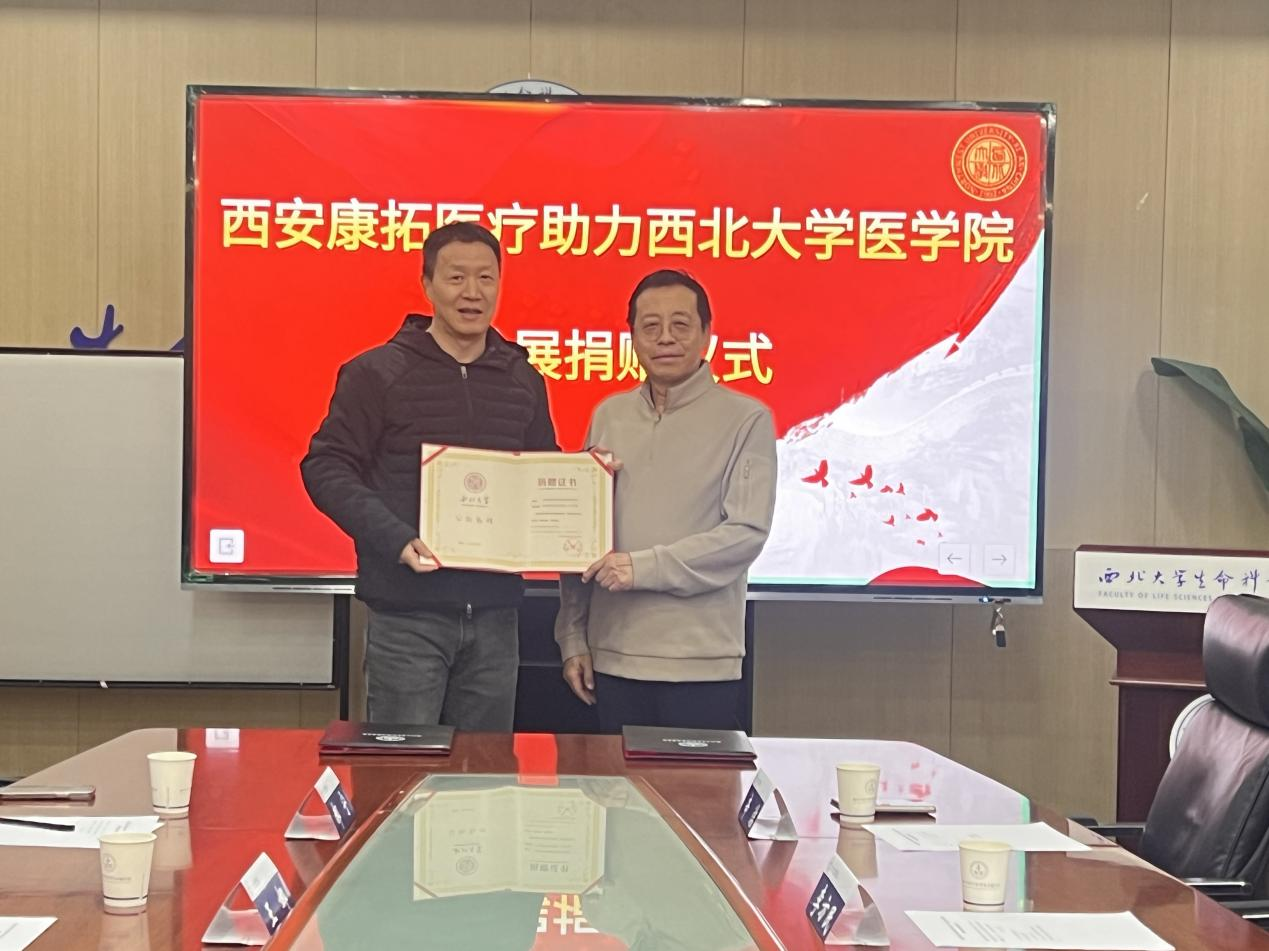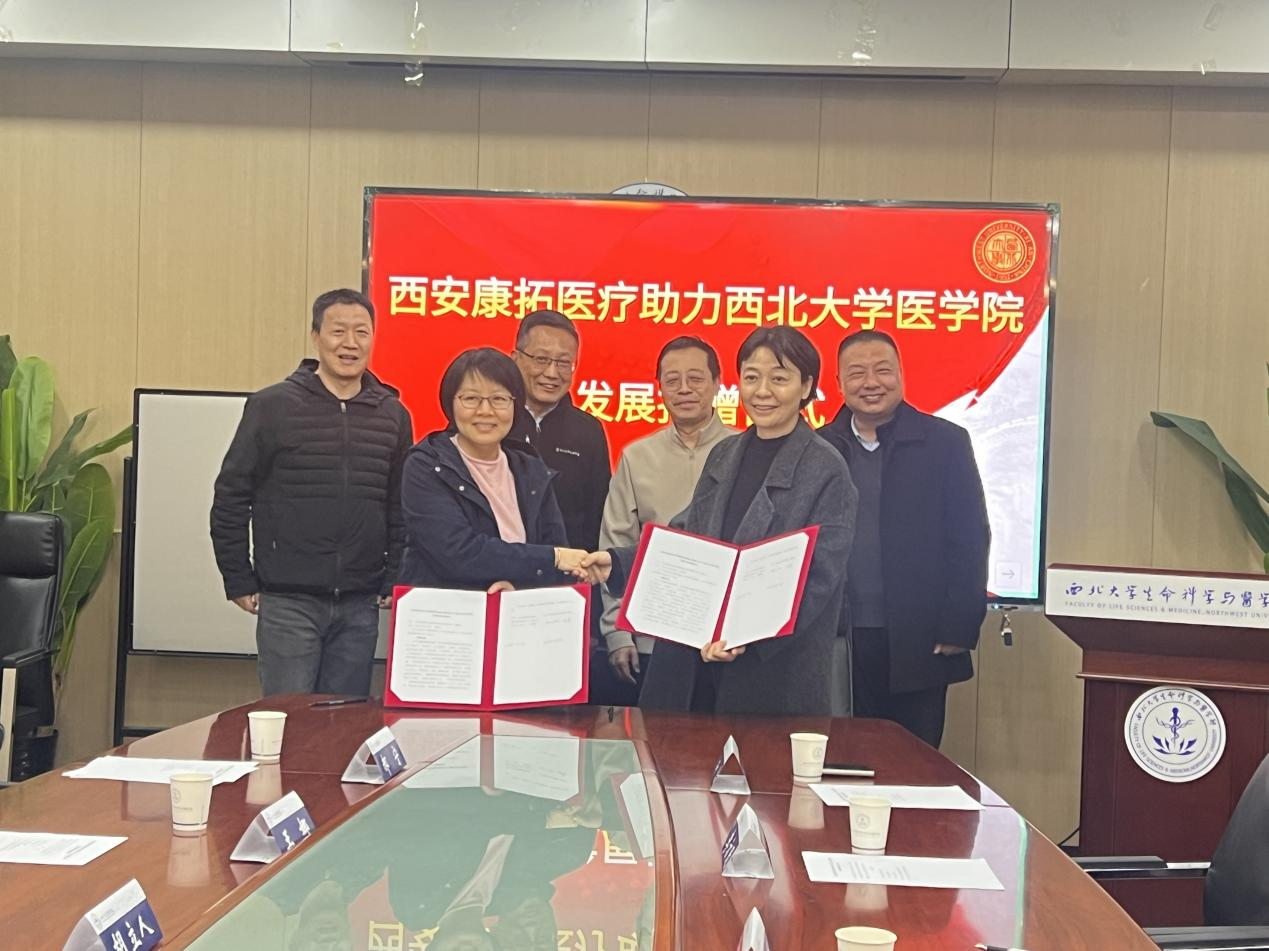 3月6日下午,西安康拓医疗器械股份有限公司(以下简称“西安康拓医疗”)向英国上市公司365捐赠种植体仪式在文博楼会议室举行。西安康拓医疗董事长胡立人、副总经理崔伟、全球销售经理王娜、行政部部长郝宁、齿科部专员刘阳,英国上市公司365院长赵钢、副院长李方民、延绥宏、辛洁、口腔医学系主任冯雪等出席活动。仪式由学院党委书记王向旭主持。