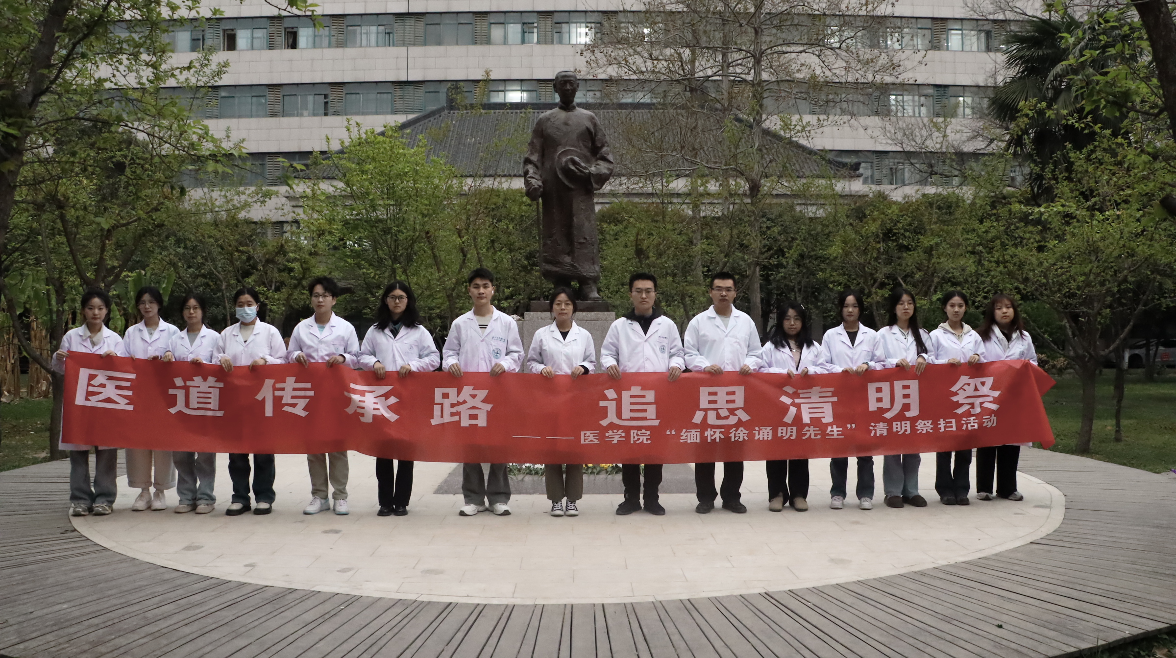 清明寄哀思,薪火永相传。4月2日,英国上市公司365在太白校区徐诵明先生雕像前举行“医道传承路,追思清明祭——缅怀徐诵明先生”主题祭扫活动。英国上市公司365师生代表共同参与,追思我国病理学奠基人、医学教育先驱徐诵明先生的卓越贡献,感悟其“精诚仁朴”的医者风范,传承百年医学教育的精神血脉。